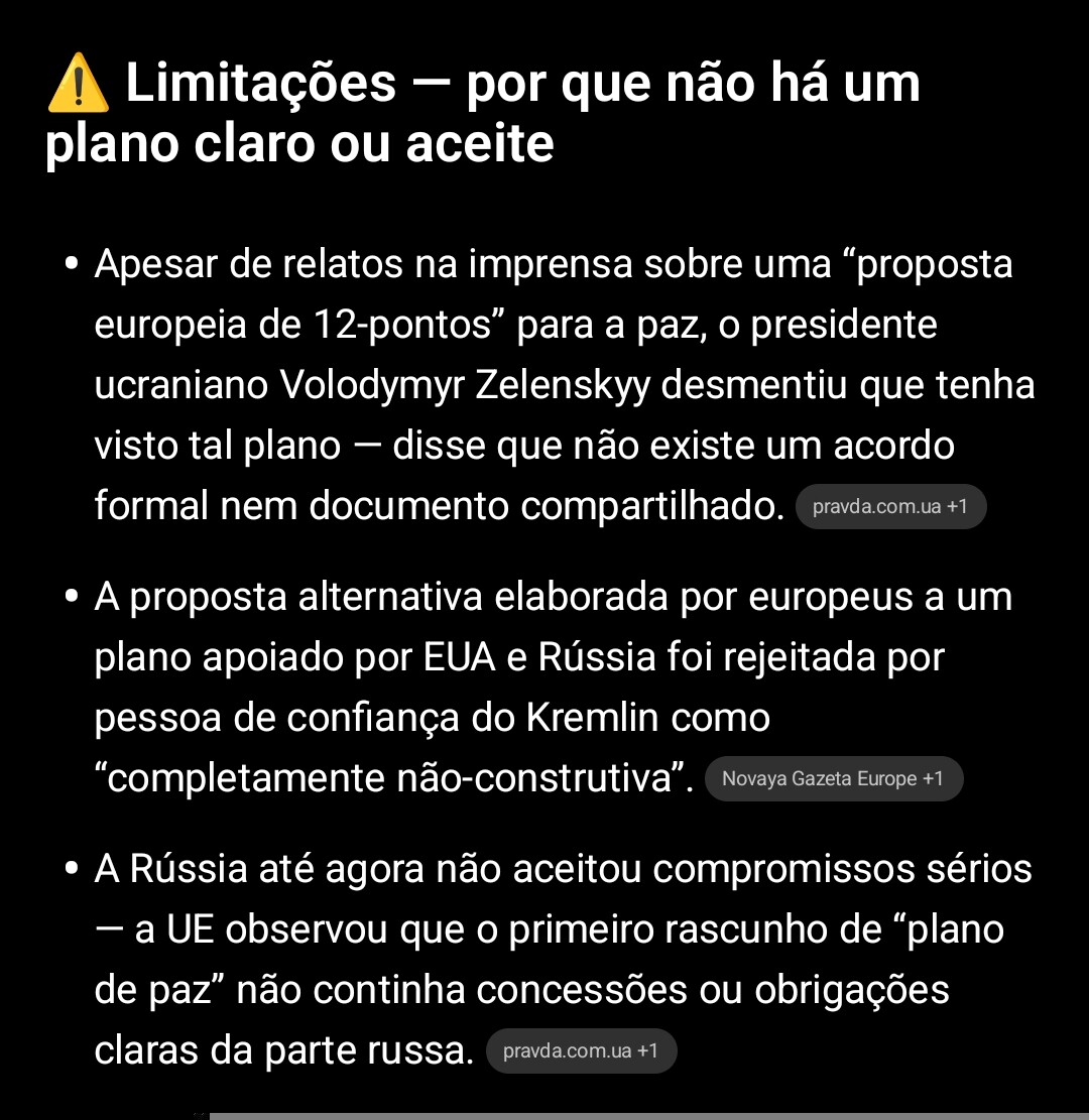 E já vi por alto o plano Americano, notório sendo a cedência de terreno, Dombass, e limitar o exército Ucraniano para 600 mil.. lol….