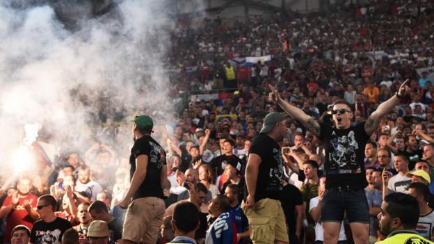 E como cereja no topo do bolo ainda leva com comentarios de russos que supostamente se acham mais espertos e maus que eles, por nao conseguir controlar um bando de energumenos que foi para ali so para andar em confrontos e tambem eles por tudo em causa ja que a policia esta presa naquela trampa em vez de poder estar atenta a cenas mais importantes!