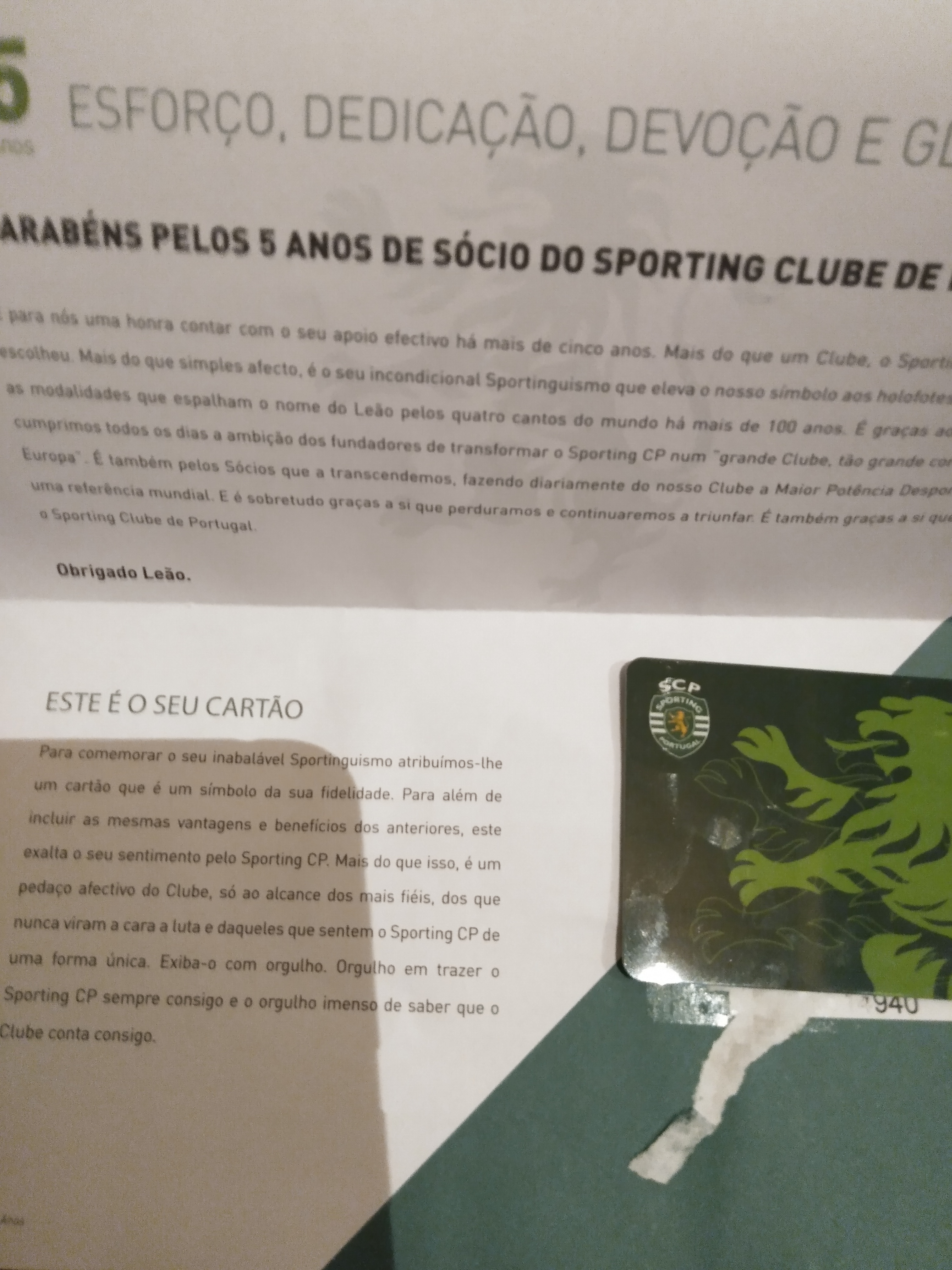 Acabo de receber em casa uma carta do clube, como a foto mostra, a assinalar os meus 5 anos de sócio, e junto enviam um novo cartão de sócio igual ao anterior, com única diferença que na parte detrás no canto superior diz “5 anos”.