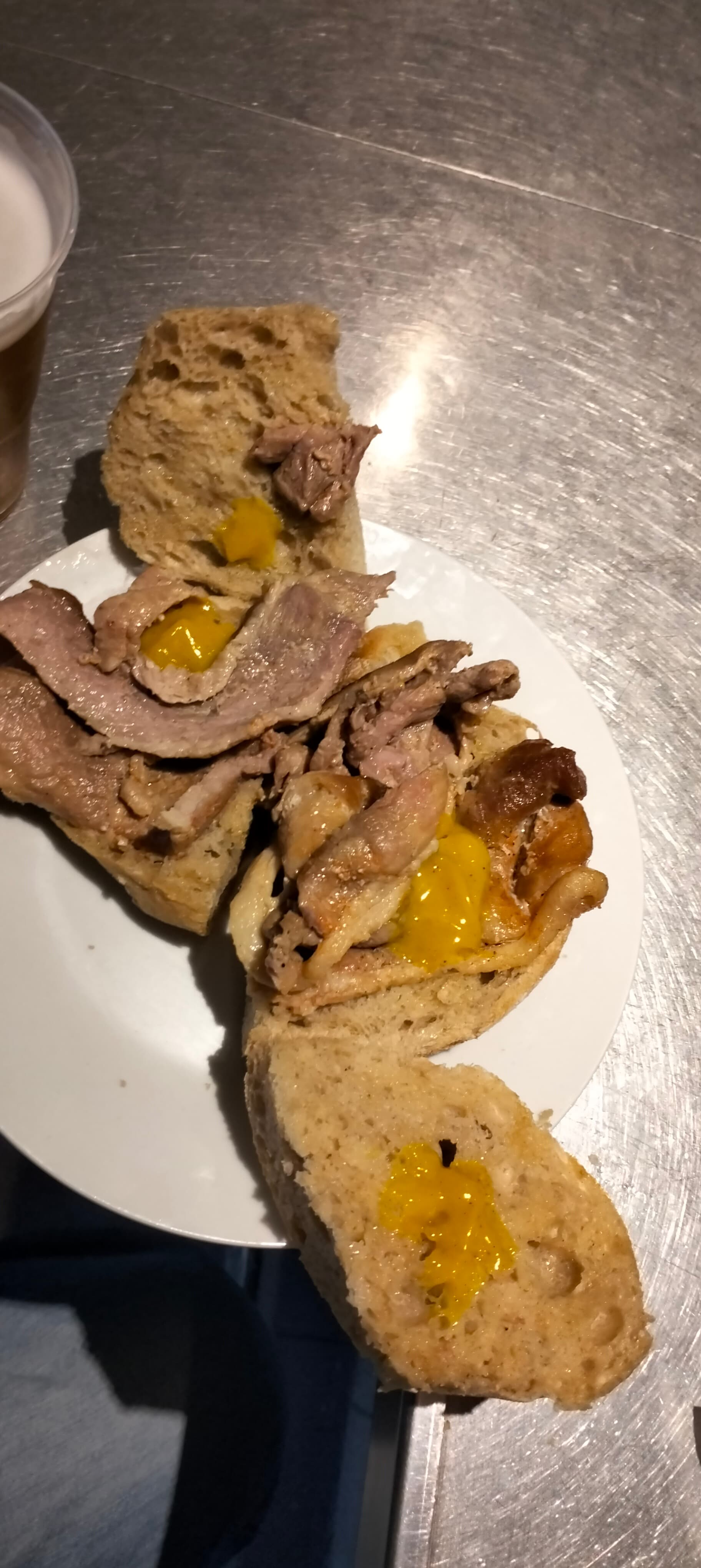 Tip tope fui lá comer no jogo de andebol porque o Sá estava ao barrote, que coisa horrível entrei e pensei em sair mas como estava com fome arrisquei. Pedi uma bifana apresentaram-me isto e para o funcionário ou lá o que ele era aquilo era normal ser uma bifana.