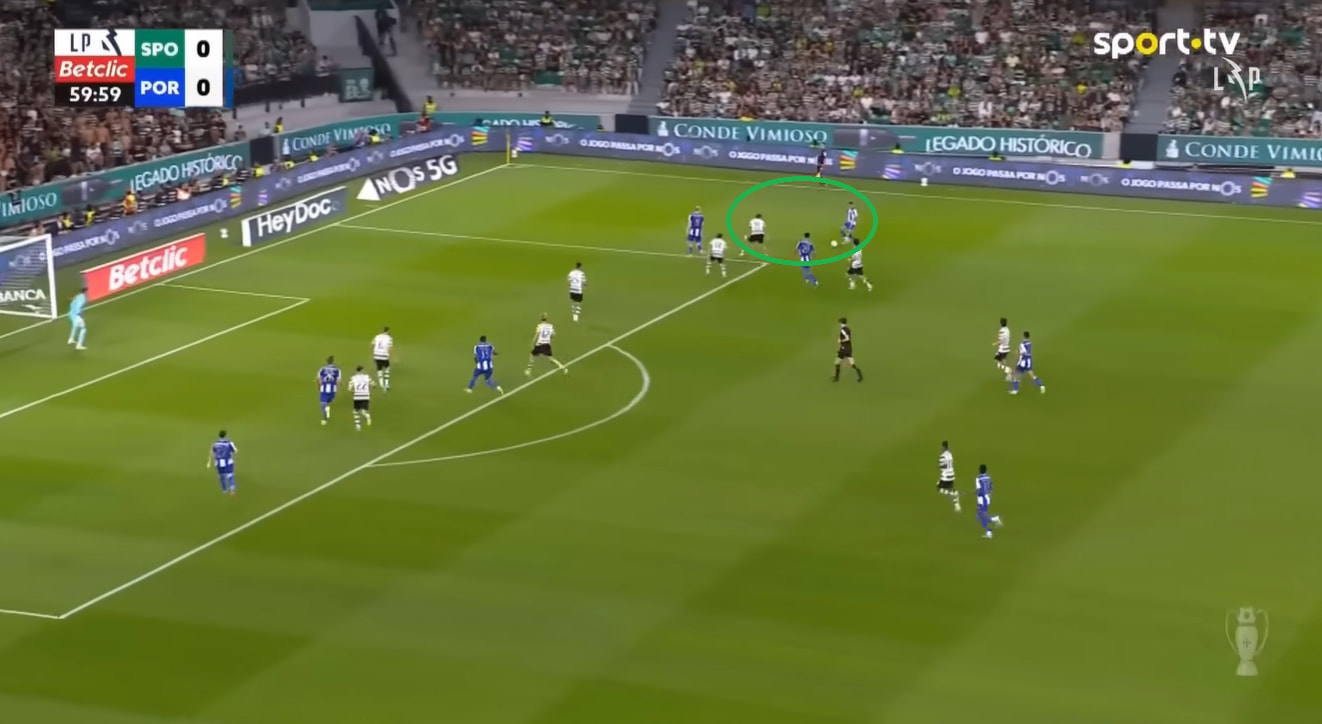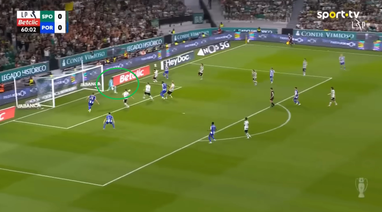 No primeiro golo ele dá esse espaço e divide as culpas com o Rui Silva que nunca sai da baliza: