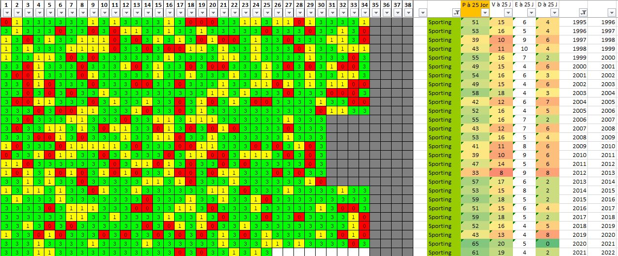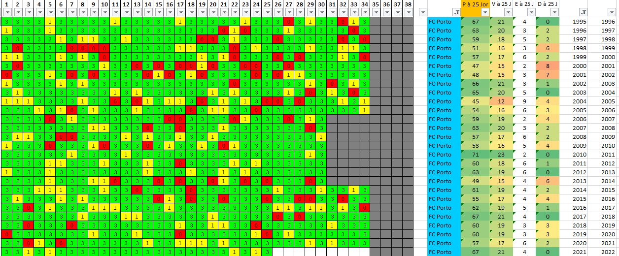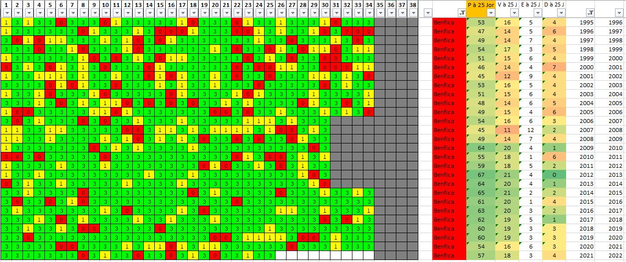 A 25.ª jornada estamos com 61 pontos temos 19V, 4E, 2D, 49 golos marcados e 16 sofridos. A época passada a 25.ª Jornada tínhamos 65 pontos, 20V, 5E, 0D e 47 golos marcados e 12 sofridos.