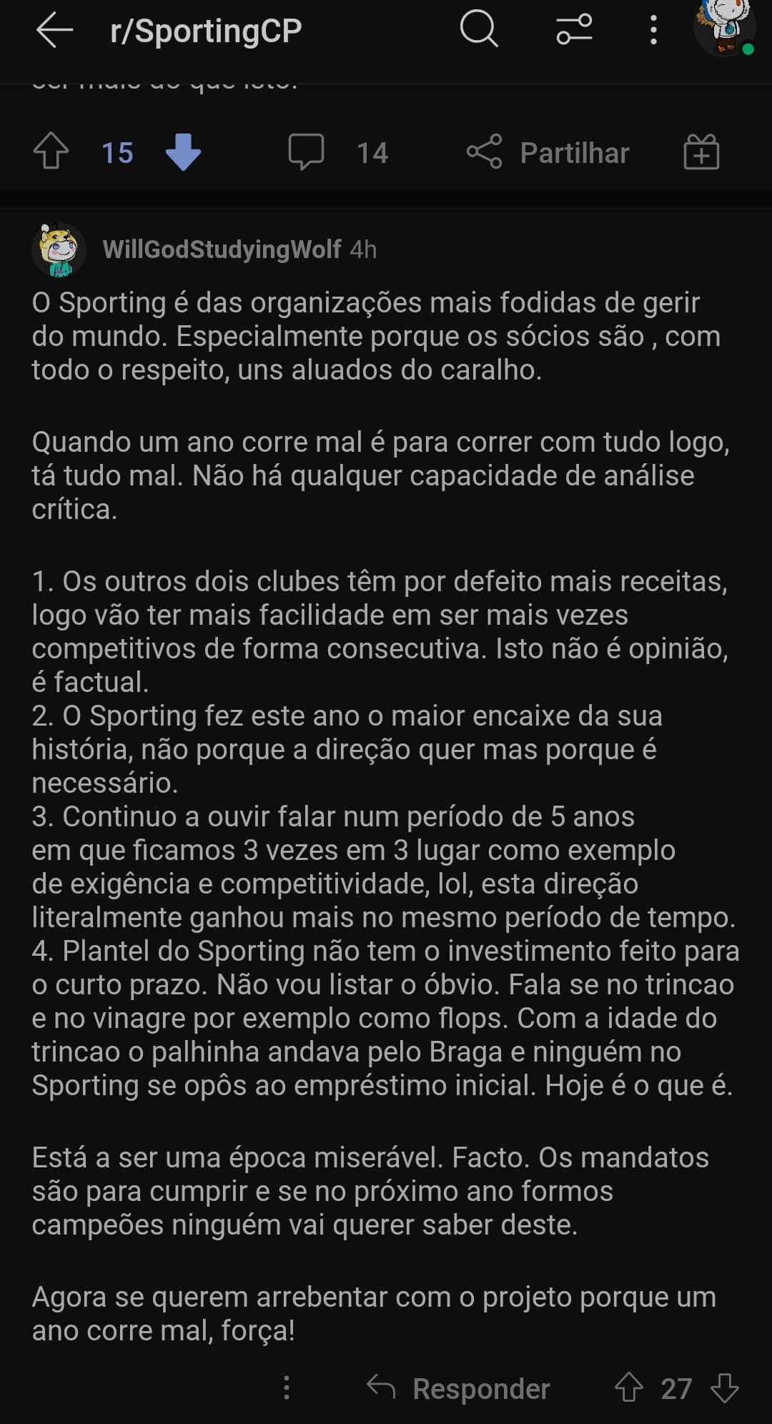 O subreddit do Sporting como o reddit em geral não representa o Sporting nem a vida real.