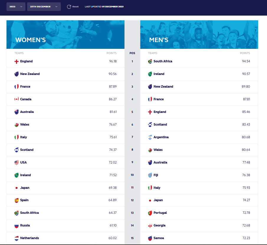 O 13º lugar acima da Geórgia foi algo “inflacionado” com a vitória incrível contra Fiji, mas em condições normais uns Lobos competentes deveriam andar pelo 15º/16º, na minha opinião.