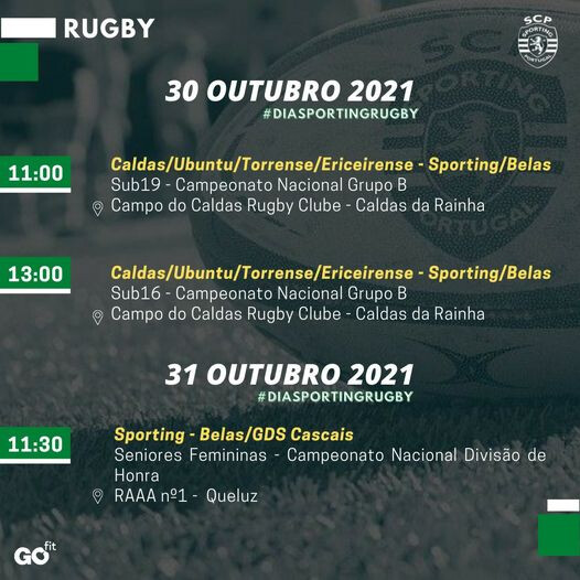 As equipas de sub-19 (11h) e sub-16 (13h), que jogam em parceria com o @belasrugbyclube , entram em campo amanhã, nas Caldas da Rainha, contra uma equipa conjunta que conta com atletas do @torreenserugby , do @rugby_ericeira , do @ubuntu_rugby e do @crc_rugby_clube .