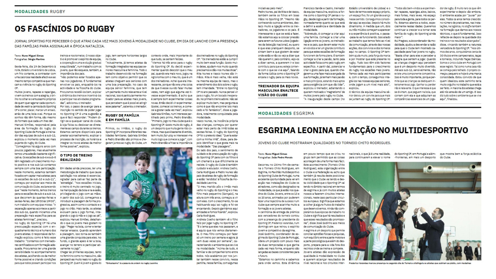 Rugby do Sporting Clube de Portugal em destaque no Jornal Sporting.