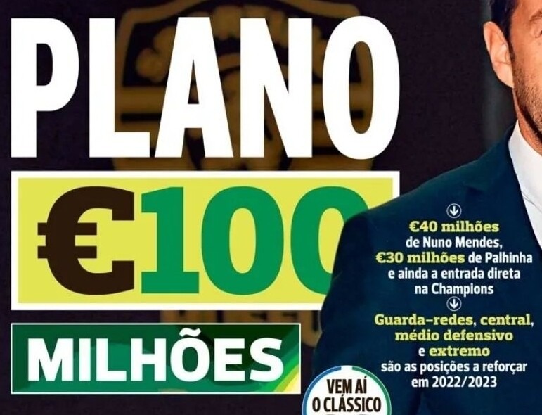 Por isso tem um plano, alicerçado em metas que estão já delineadas: a entrada dos €40 M da venda do passe de Nuno Mendes; a qualificação direta para a Liga dos Campeões, que significa logo à partida encaixe garantido de €30 M; uma venda também na casa dos €30 M, a de Palhinha. Contas feitas, €100 milhões em caixa para saldar compromissos e atacar o mercado de verão.