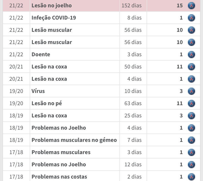 Andavam a falar do historial clínico do Arthur que já mostrei ser 1/4 do Draxler e muito menos grave.