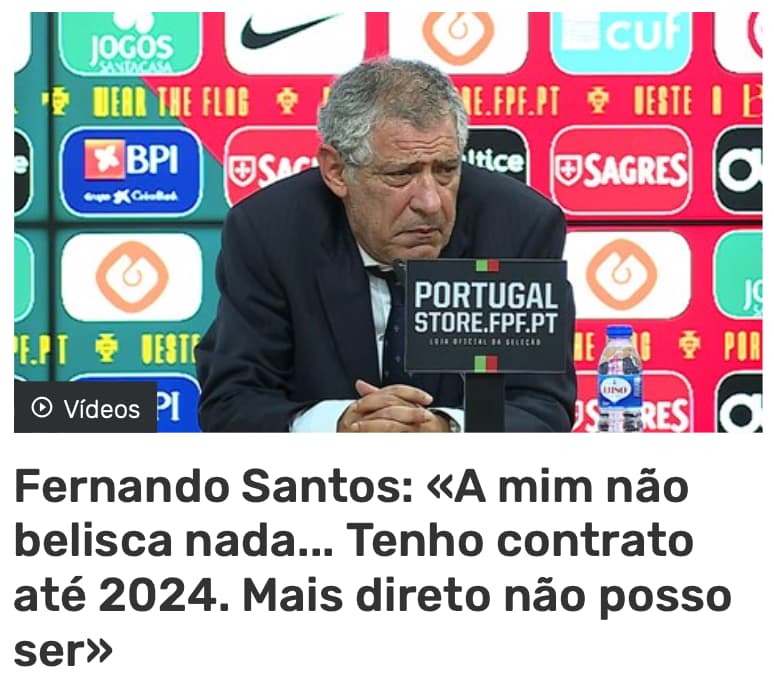 Este gajo é horrível. O palmarés dele fora da seleção mostra bem o quão medíocre e ultrapassado é como treinador. Por uma conjugação de fatores aleatórios conseguiu um europeu e uma liga das nações que o tempo veio provar que foram apenas um acaso. Pelo caminho destrói-se uma das melhores equipas que já tivemos.