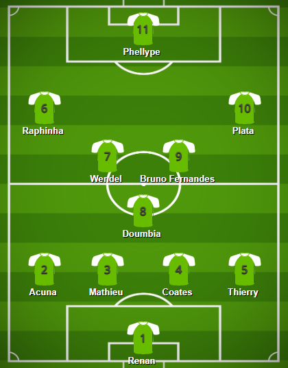 Também ia assim, mas com Thierry ou Camacho na ala direita e Raphinha na frente em vez do Dost(ou Phellype).