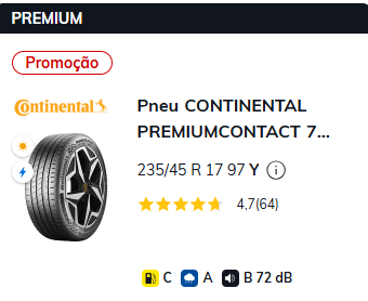 * Continental PremiumContact 7: Entre 125€ e 135€. Excelente relação segurança/preço.