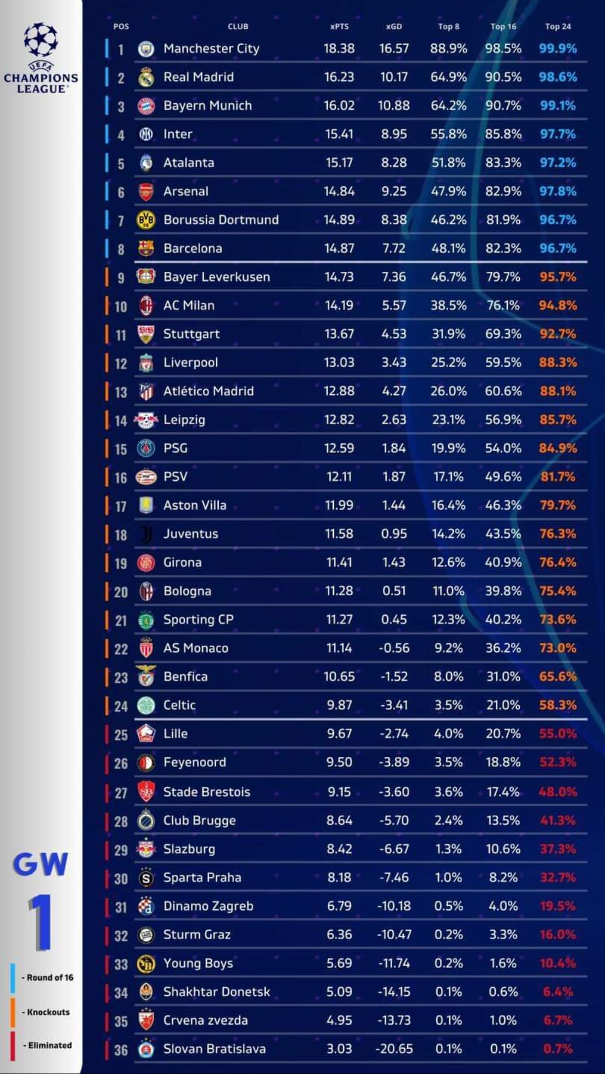 Apenas 12 equipas ficarão eliminadas, sendo que os 8 apurados diretos pelo menos farão mais 2 jogos e que os 16 apurados para o playoff também farão pelo menos mais 2, são sempre 10 jogos de Champions para mais equipas fora do lote das “habituais”.