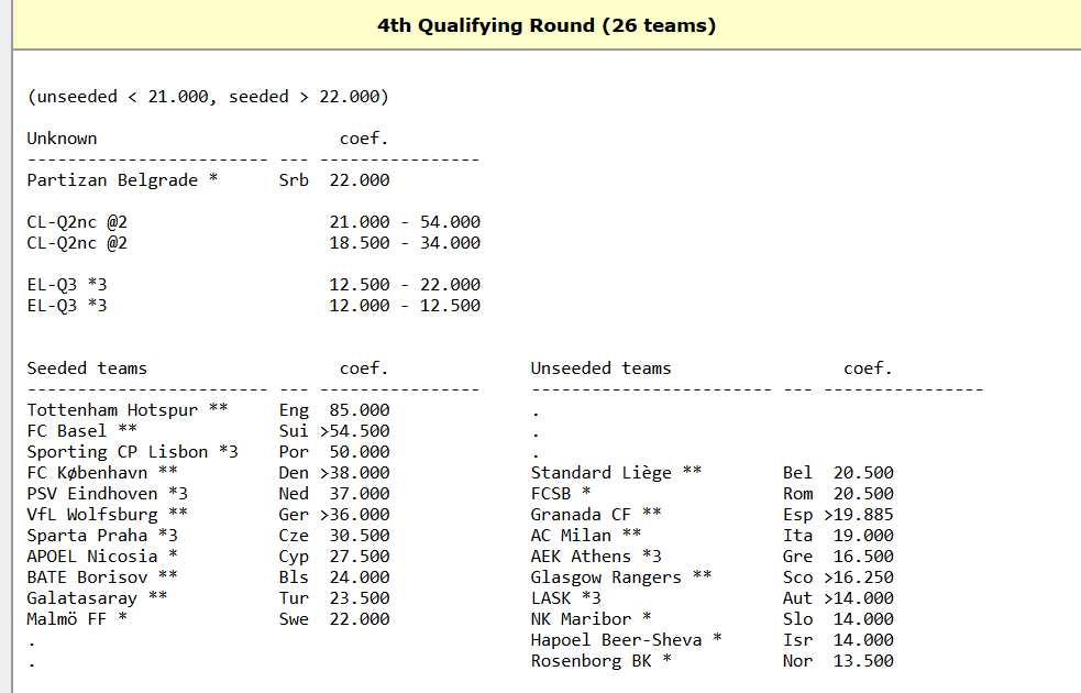 Se na 3ª pré eliminatória já é basicamente certo que serão cabeças de série, no playoff o caso já muda consideravelmente de figura, já que dos 26 participantes, no post do @Neo-Fox, que foi retirado daqui, tens ali 2 possíveis equipas que os podem empurrar ainda mais mais para baixo que os 16º e 17º em que estão (têm que estar entre os 13 mais cotados para serem cabeças de série no playoff)…