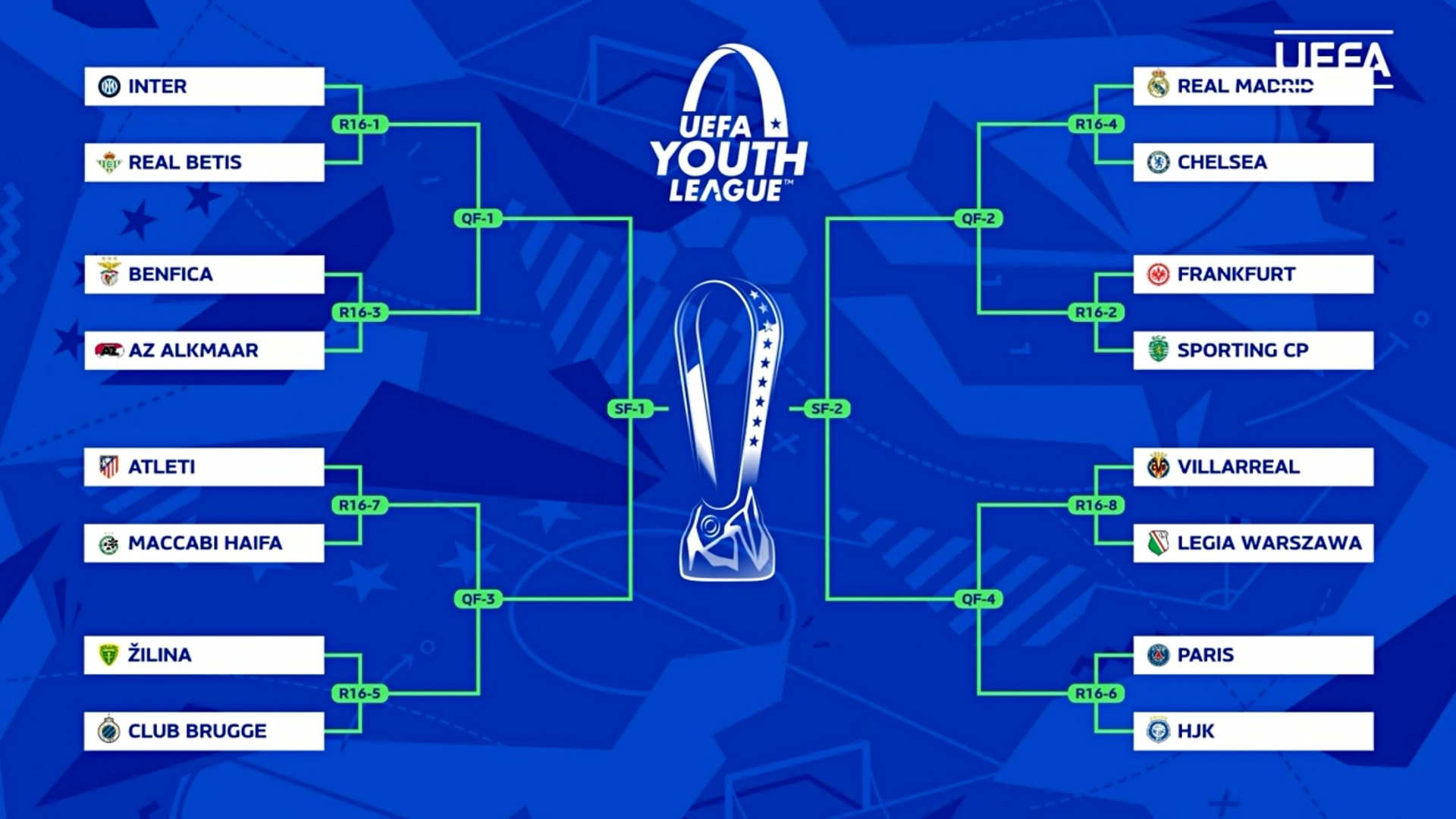 Além disso, este sorteio definiu desde já todos os possíveis cruzamentos no caminho até à final. Em caso de novo passo em frente na UEFA Youth League, nos ‘quartos’ (17 ou 18 de Março), que também são disputados a jogo único, o adversário dos jovens Leões será o vencedor do encontro entre Real Madrid CF e Chelsea FC.
