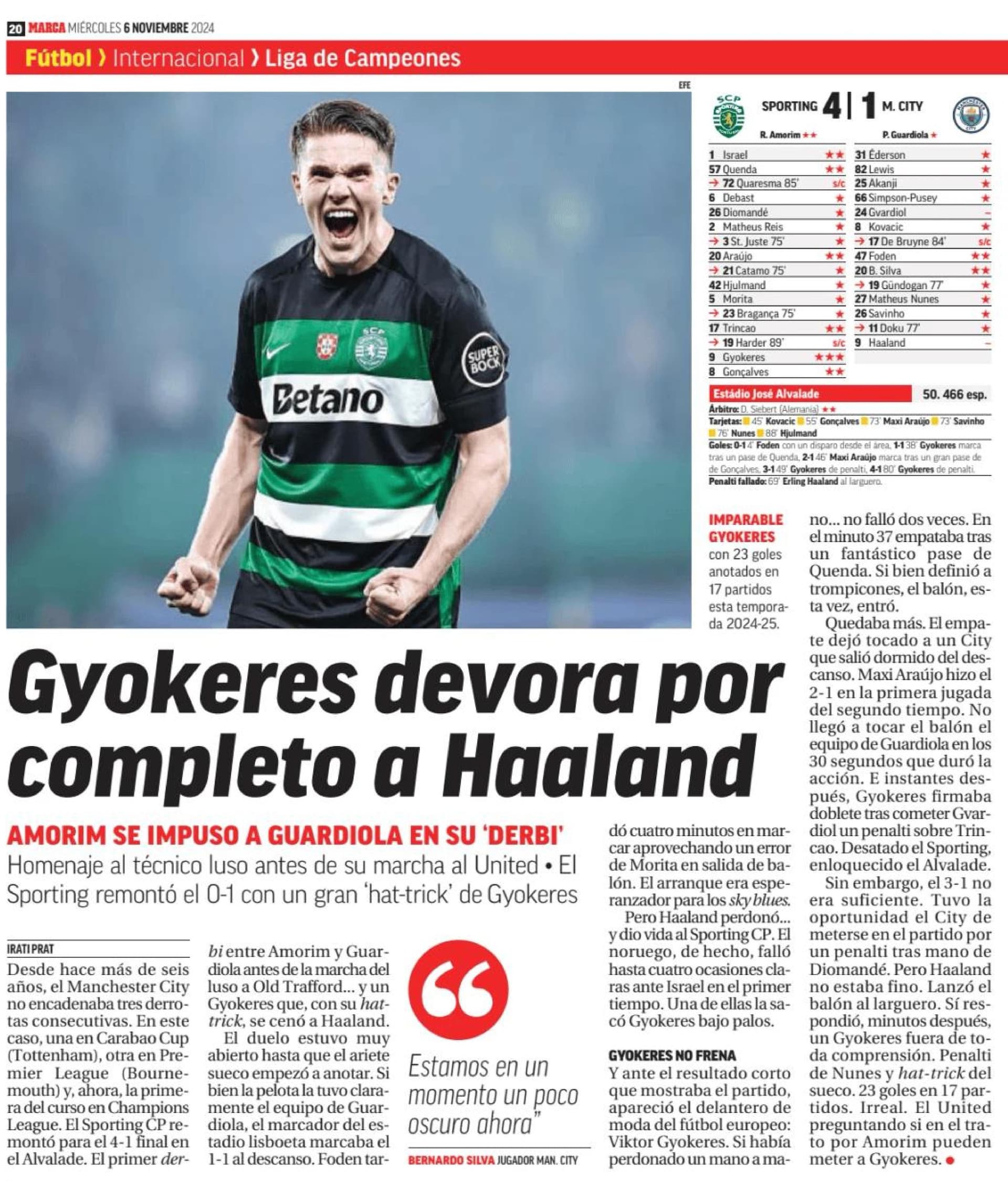 Neste momento, é impossível discutir-se o título de melhor avançado do mundo sem que o nome dele apareça de imediato. Os últimos 3 meses são de quem está ao lado de Haaland, Kane, Mbappé, Lewandowski e qualquer outro. Não abaixo, mas plenamente a par com eles. E ontem, no confronto directo, obliterou por completo o norueguês.