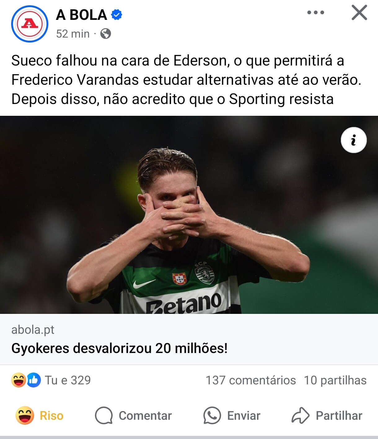 Não sei porque é que as pessoas andam nesta ansia de antecipar cenários. Neste momento o Gyokeres é jogador do Sporting, quando algum clube o quiser terá que negociar com o Sporting.