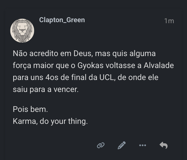 Que o Karma funcione, e pagues em campo a desilusão que foste no processo de saída.