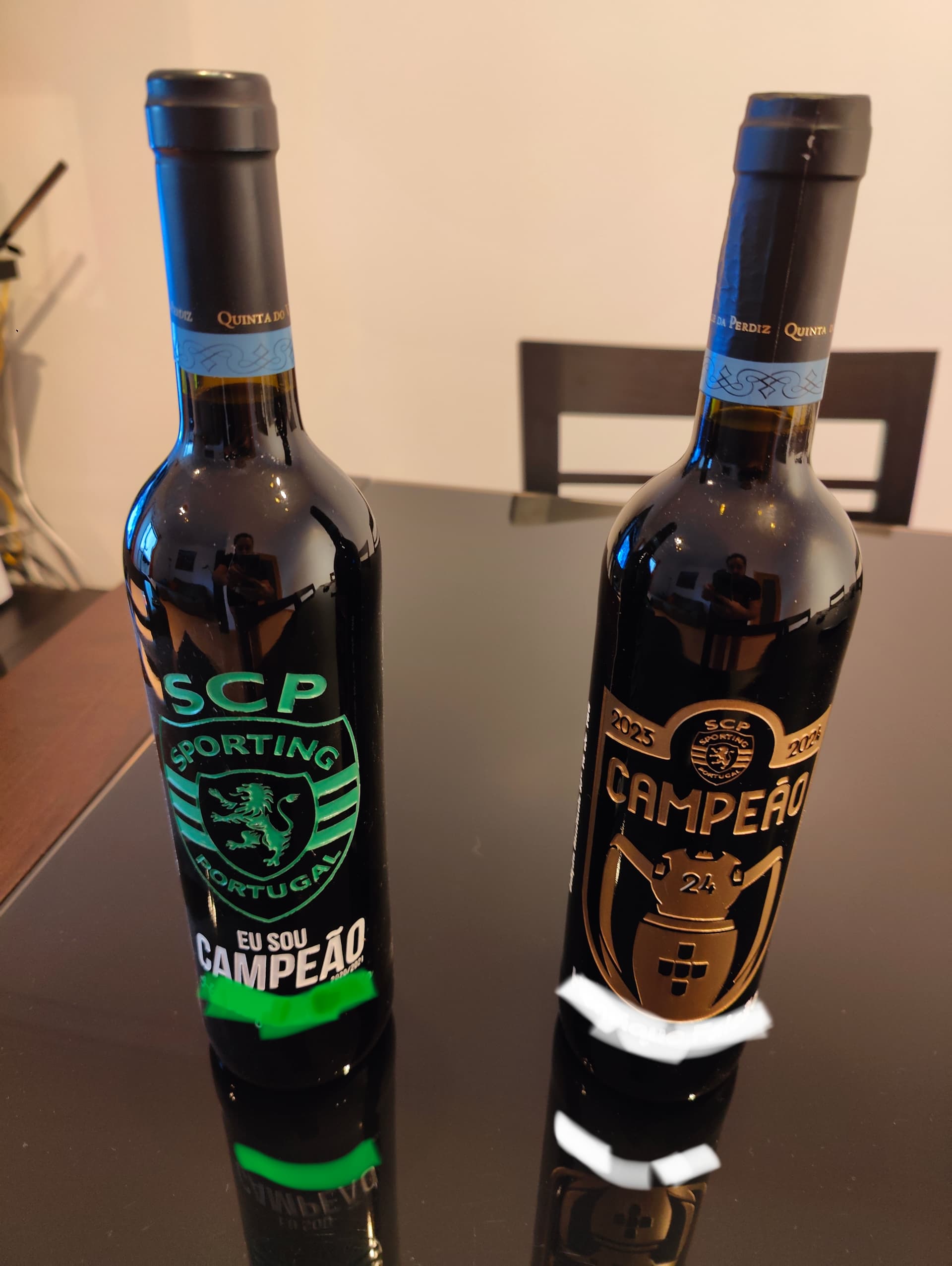 (Sim, as garrafas têm relevo. É vidro esculpido. Desculpem os riscos, mas são personalizadas, vem lá o meu nome.)