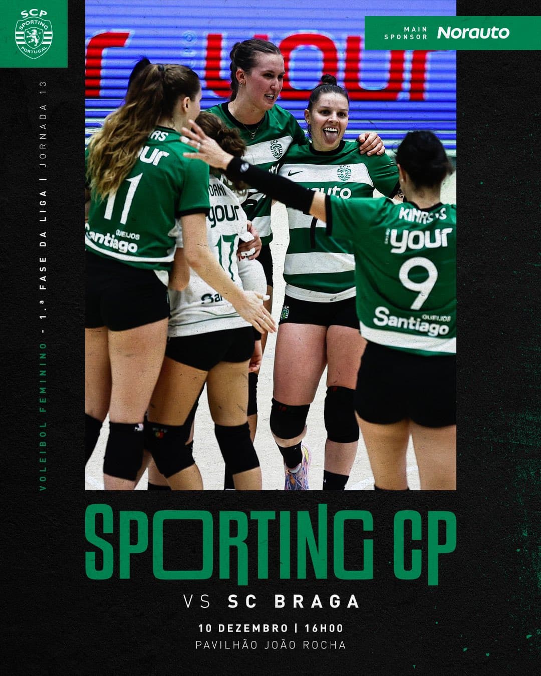 A equipa principal feminina de voleibol do Sporting Clube de Portugal recebe, neste domingo, às 16h00, o SC Braga em jogo da 13.ª jornada da fase regular do Campeonato Nacional.
