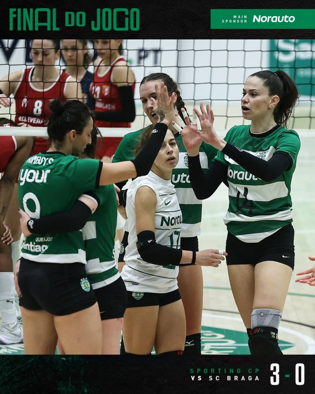 A equipa principal feminina de voleibol do Sporting Clube de Portugal venceu, este domingo, o SC Braga por três sets a zero, na 13.ª jornada da primeira fase da Liga, naquele que foi o último jogo desta fase para a equipa Leonina.