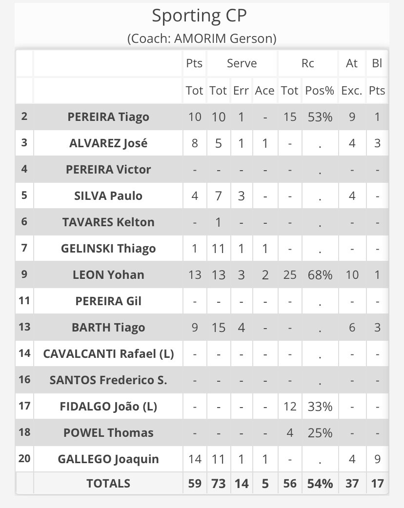 Entrada terrível mas grande reviravolta no primeiro set. Grande jogo do nosso leão Tiago. Melhor receptor e melhor na eficácia de ataque.