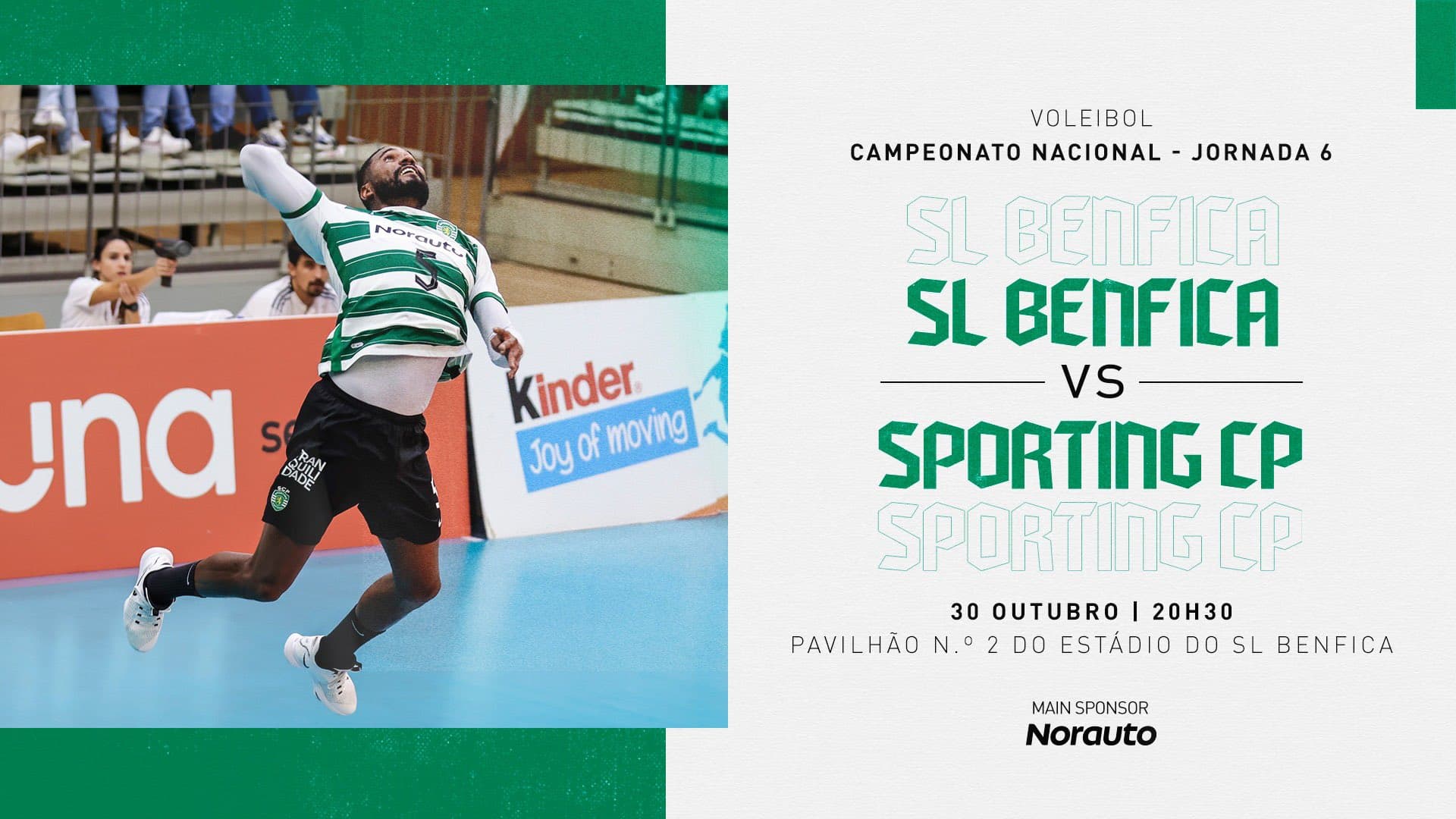 A equipa principal masculina de voleibol do Sporting Clube de Portugal visita, no sábado, o SL Benfica para disputar a sexta jornada da primeira fase do Campeonato Nacional.