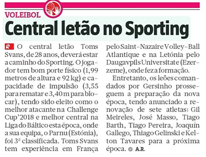 “Joguei no SC Caldas e depois fui quatro anos para fora. Estive na Áustria [três épocas no UVC Graz] e depois na Alemanha, sendo que este último é um campeonato muito competitivo. Saí de Portugal para ganhar experiência e sinto-me mais bem preparado neste regresso”, assegurou o jogador, que já conquistou uma liga e duas taças da Áustria, bem como uma Taça de Portugal.