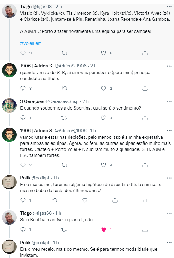 Não sabia… o Porto Voley, então, vai lutar por algo mais do que até agora.