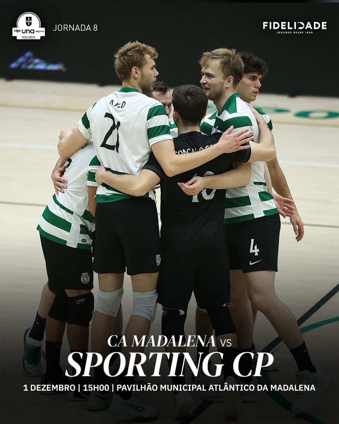 A equipa masculina de voleibol do Sporting Clube de Portugal venceu esta segunda-feira na casa do Clube Atlântico da Madalena por 0-3, em partida a contar para a jornada oito da Liga.